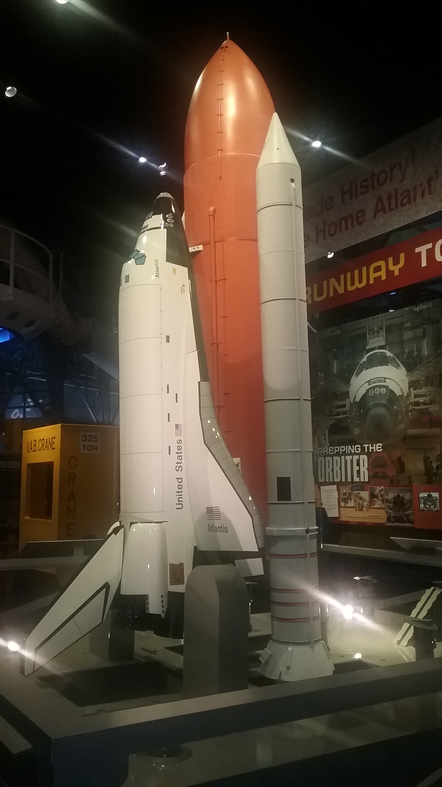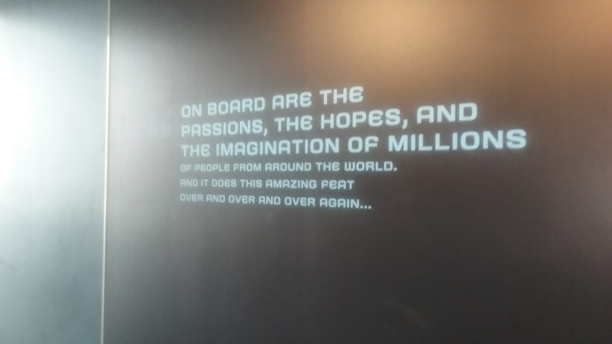 We also got to see the ACTUAL space shuttle Atlantis. We saw a short film beforehand about it, but then in the grandest way ever, the doors behind the screen opened up. I could see it was going to lead us to the Atlantis museum, but as the doors slowly opened up, more and more it revealed something that didn’t seem as big as it appeared on a computer screen. It was so beautiful! It was … Atlantis! My mouth dropped as a huge gasp escaped my lips while the screen pulled up to reveal a clearer view of this amazing piece of work that humanity created to go into space!